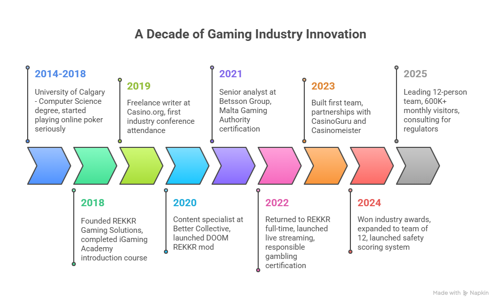 Started REKKR as a side project to document my casino experiences. The name came from my love of retro gaming and Norse mythology — “REKKR” roughly translates to “warriors” in Old Norse. First month’s traffic: 73 visitors, mostly my mom.